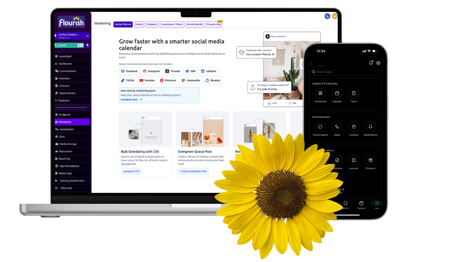 This page focuses on what Flourish helps you do so you don’t get lost in tech jargon. If you’re the kind of person who loves details, you can see every feature, broken down by category, on our Full Flourish Feature Tour section. It shows exactly what’s included in each plan and how it all fits together.